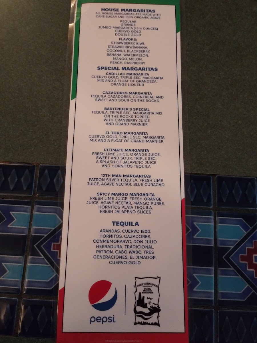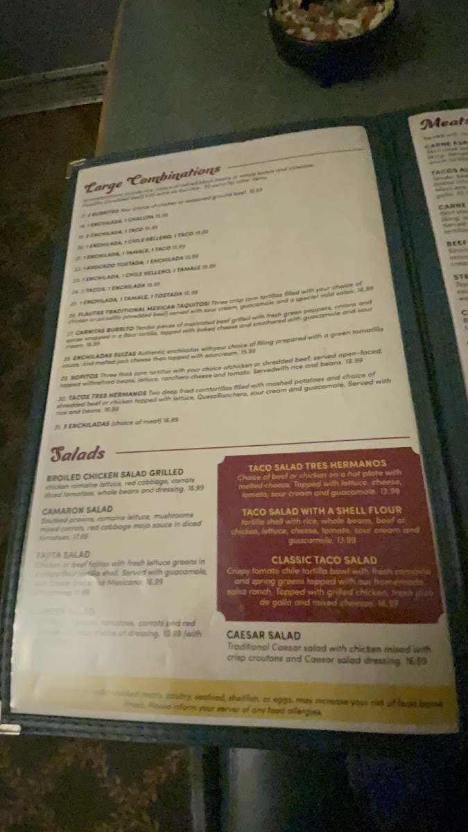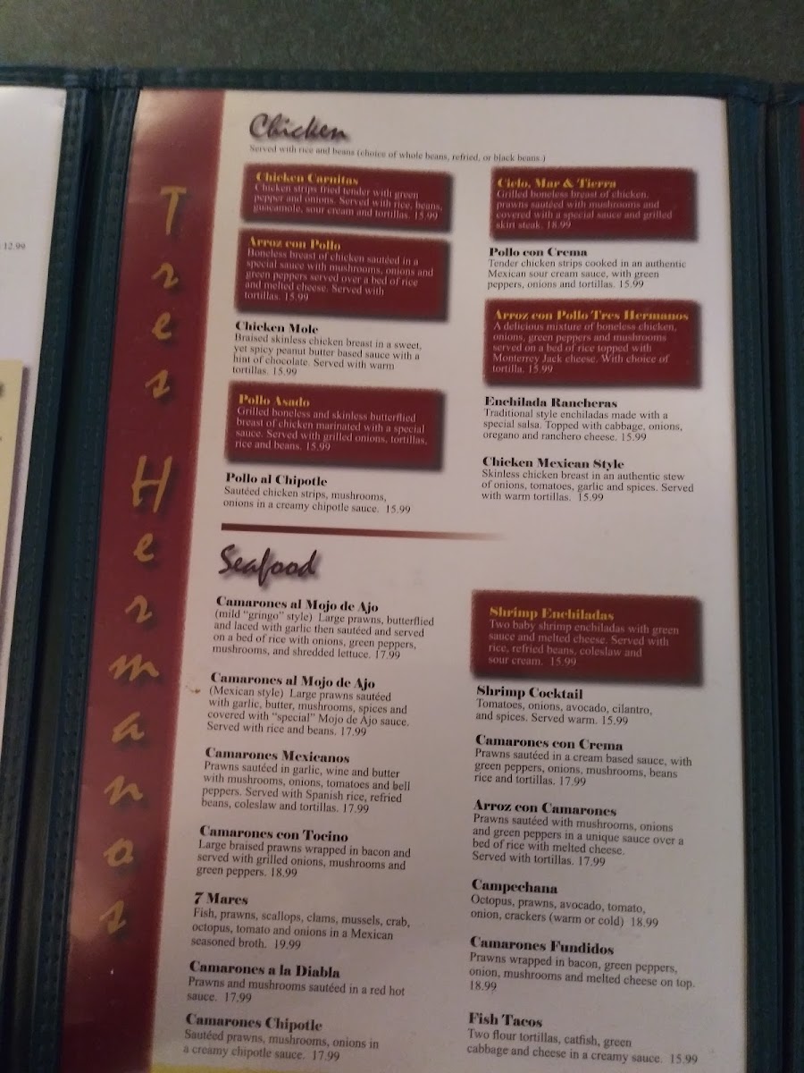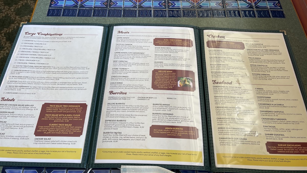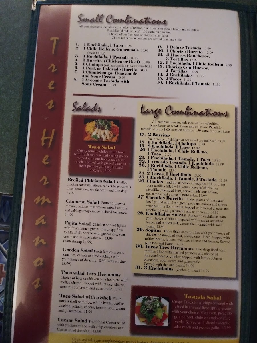 Tres Hermanos Menu